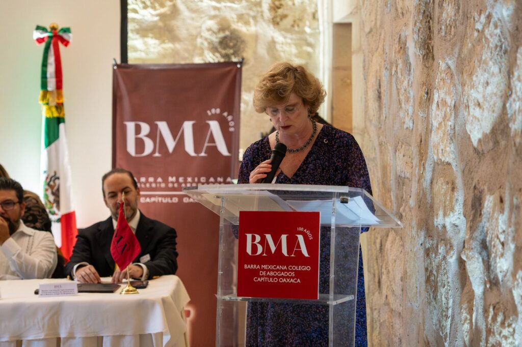 La actividad estuvo acompañada por la Mtra. Ana María Kudisch Castelló, Presidenta Nacional de la Barra Mexicana Colegio de Abogados A.C.; por el Mtro. Jaime Alejandro Velásquez Martínez, Presidente saliente del Capítulo Oaxaca; así como por el Mtro. Víctor Manuel Aguilar Ávila, Director General de Notarías y Archivo General de Notarías que fungió como representante del Gobernador de Oaxaca.